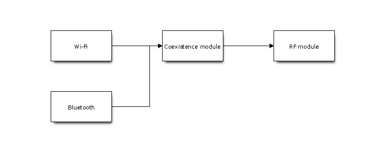 The RF resource allocation mechanism is based on priority. As shown below, both Bluetooth module and Wi-Fi module request RF resources from the coexistence module, and the coexistence module decides who will use the RF resource based on their priority.