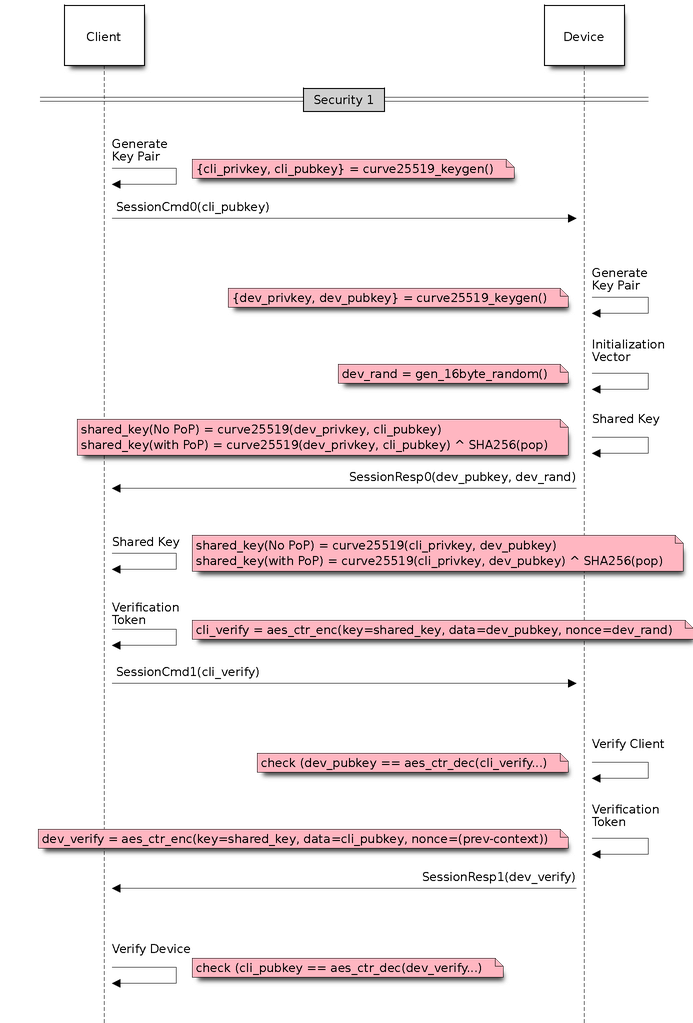 The respective security schemes need to be enabled through the project configuration menu. Please refer to Enabling Protocomm Security Version for more details.