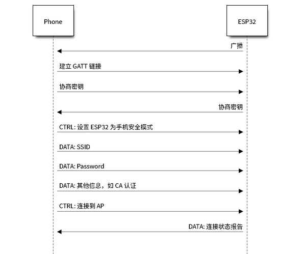 成功建立 GATT 连接后,手机会向 ESP32 发送数据帧进行密钥协商(详见 BluFi 中定义的帧格式 )。